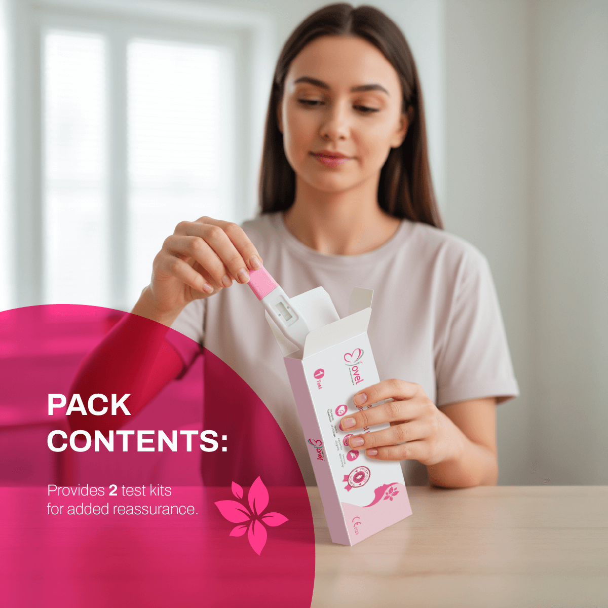 - 2 x midstream pregnancy test kit, individually packed in a sealed pouch