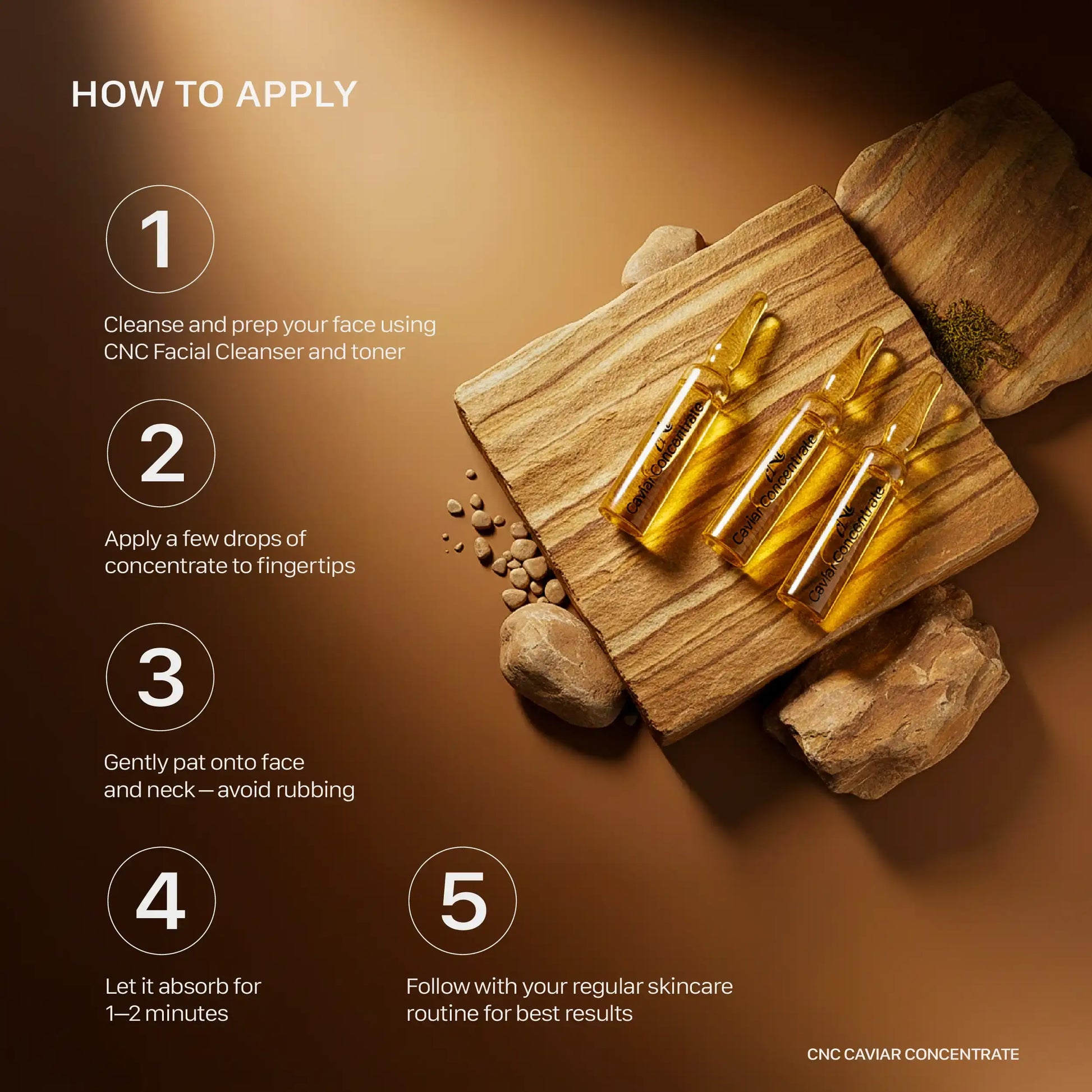 Reveal youthful radiance with CNC Caviar Concentrate Ampoule—a luxurious blend of marine caviar extract, peptides, and anti-aging actives. This intensive formula deeply hydrates, smooths fine lines, and improves skin elasticity. Ideal for mature, tired, or demanding skin, it restores firmness and glow for a visibly rejuvenated, revitalized complexion.