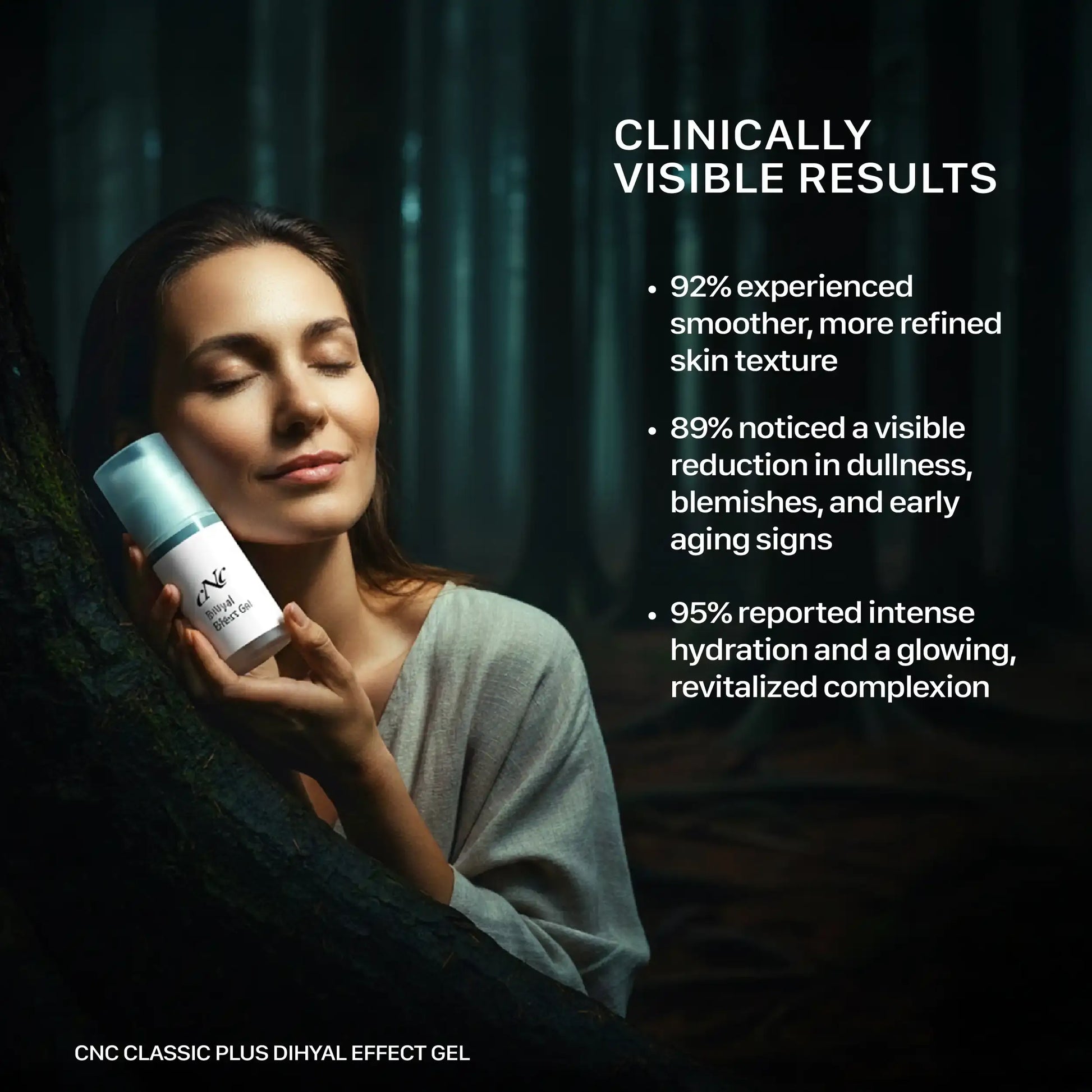 CNC Classic PLUS DiHyal Effect Gel visibly smooths expression lines and dryness wrinkles while firming facial contours. It boosts the skin’s natural regeneration process and helps protect against premature aging. In just 28 days, skin looks revitalized, tighter, and more youthful—revealing a smoother, fresher complexion with lasting hydration and care.