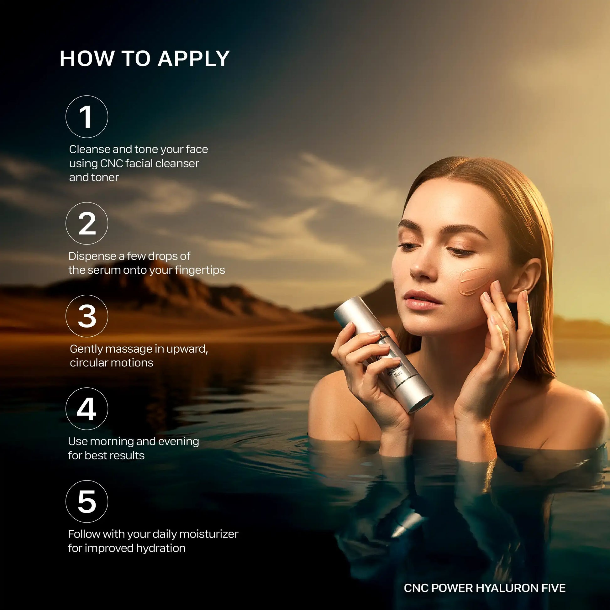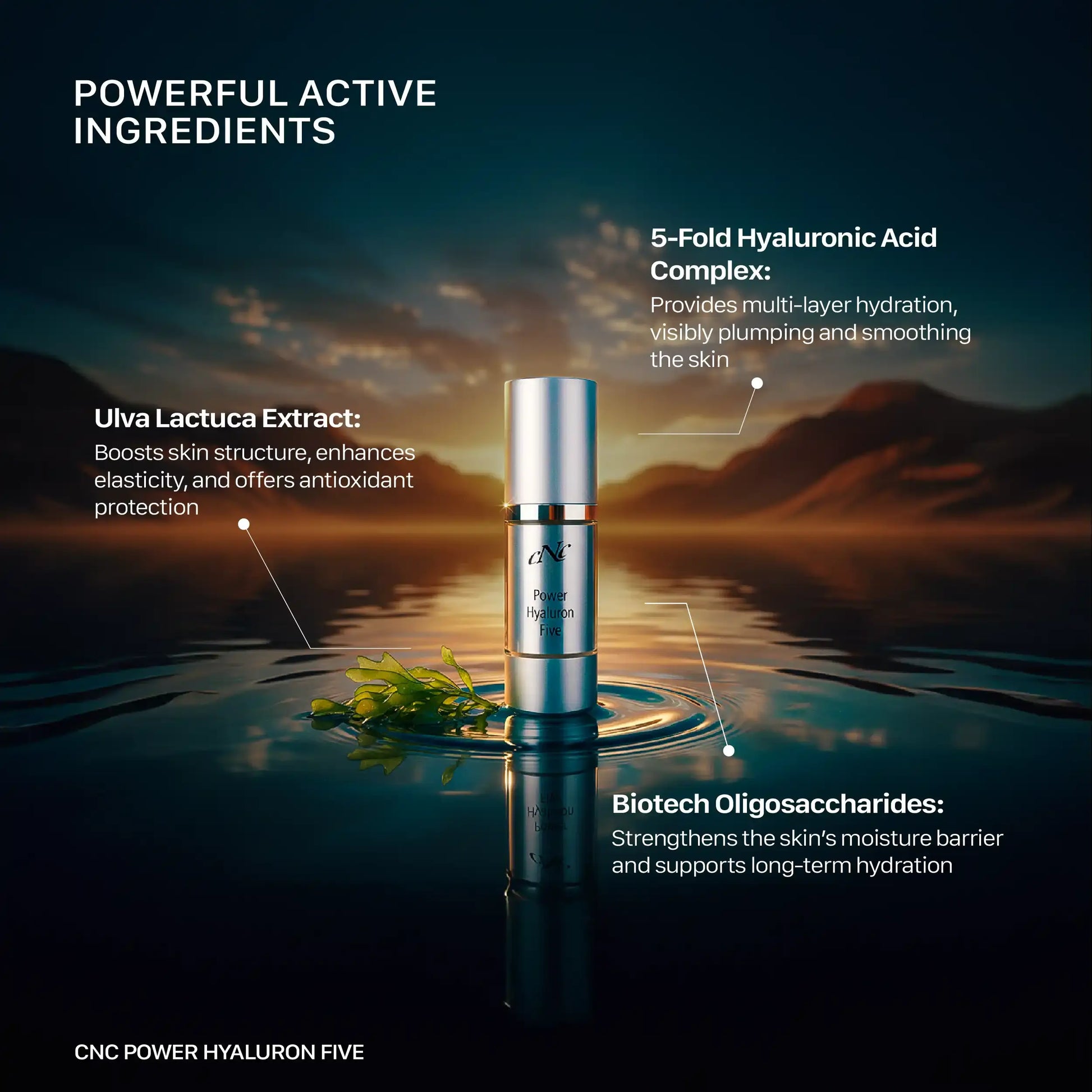CNC Aesthetic World Power Hyaluron Five is a featherweight, multi-depth hydrating serum for persons of any skin type. This product consists of five different types of hyaluronic acid, and thus, it can make the skin a lot more hydrated, more elastic, and it can also give the skin a more voluminous look. This quick-absorbing formula will definitely bring back the hydration level and will be very supportive of a smoother, firmer, and livelier complexion. Dermatologically tested for safety in daily care.